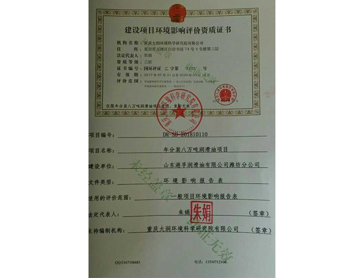 港孚公司環(huán)評資質(zhì)